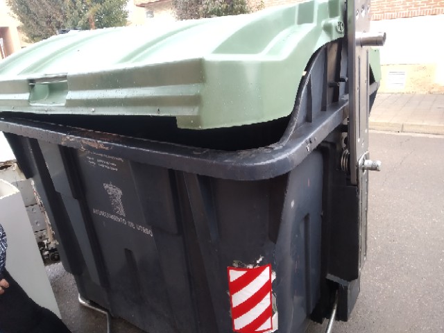 El contenedor verde de residuos no abre bien y se encuentra frecuentemente demasiado metido en la calzada.