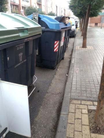 Es frecuente que los contenedores de basura los dejen demasiado separados de la acera. Eso dificulta el tráfico que es de doble sentido.